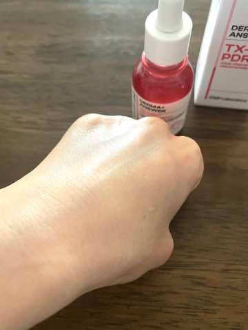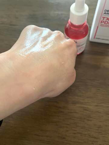 手の甲にのせた美容液を、塗り広げるとみずみずしい質感で