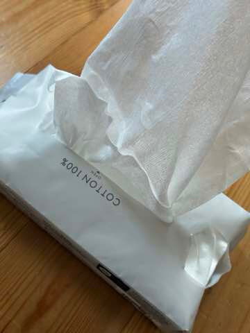 コットン100%で肌あたりやわらか。私は洗顔後の水気取りに使ってます!拭き取りクレンジングやネイルオフにも便利◎