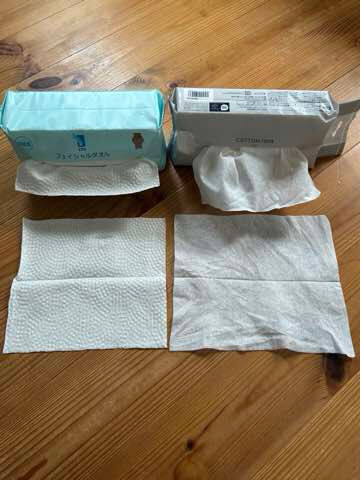 洗顔後の水分を含んだ後のシートでは、両者の違いは、それほど大きくないと感じます。